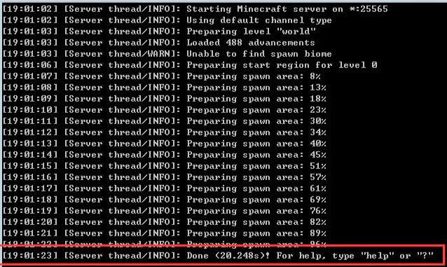 显示Done时,表示服务端启动完成,服务器即搭建完毕。